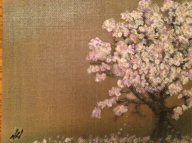 Cherry Blossoms May 26, 2014 3264 × 2448 Art! For my Ma, the incomparable http://www.CindyHowertonWatercolors.com Acrylic and Enamel on Burlap Like Loading...